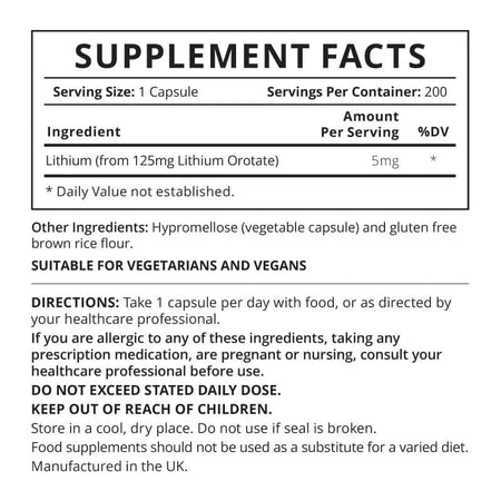 Please note that we have changed the format from tablets to capsules. Each capsule still contains the same amount of lithium orotate as before. The serving size has been adjusted to 1 capsule to better accommodate individual requirements.