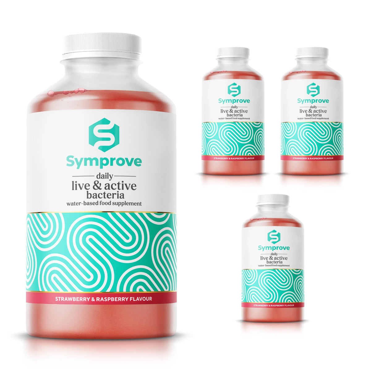Symprove Strawberry & Raspberry Flavour Water Based Food Supplement 4 x 500ml 4 Week Supply