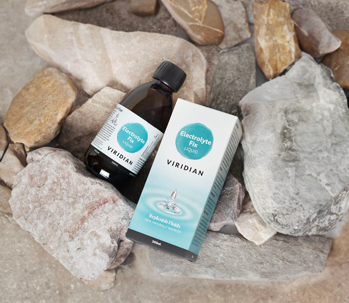Refuel your liquids with Viridian Electrolyte Fix. A blend of natural minerals and electrolytes which turns water or any beverage into an electrolyte-fuelled drink to help you stay fresh. Sourced from the Great Salt Lake in Utah, USA. 100% active ingredients formulated by expert nutritionists.